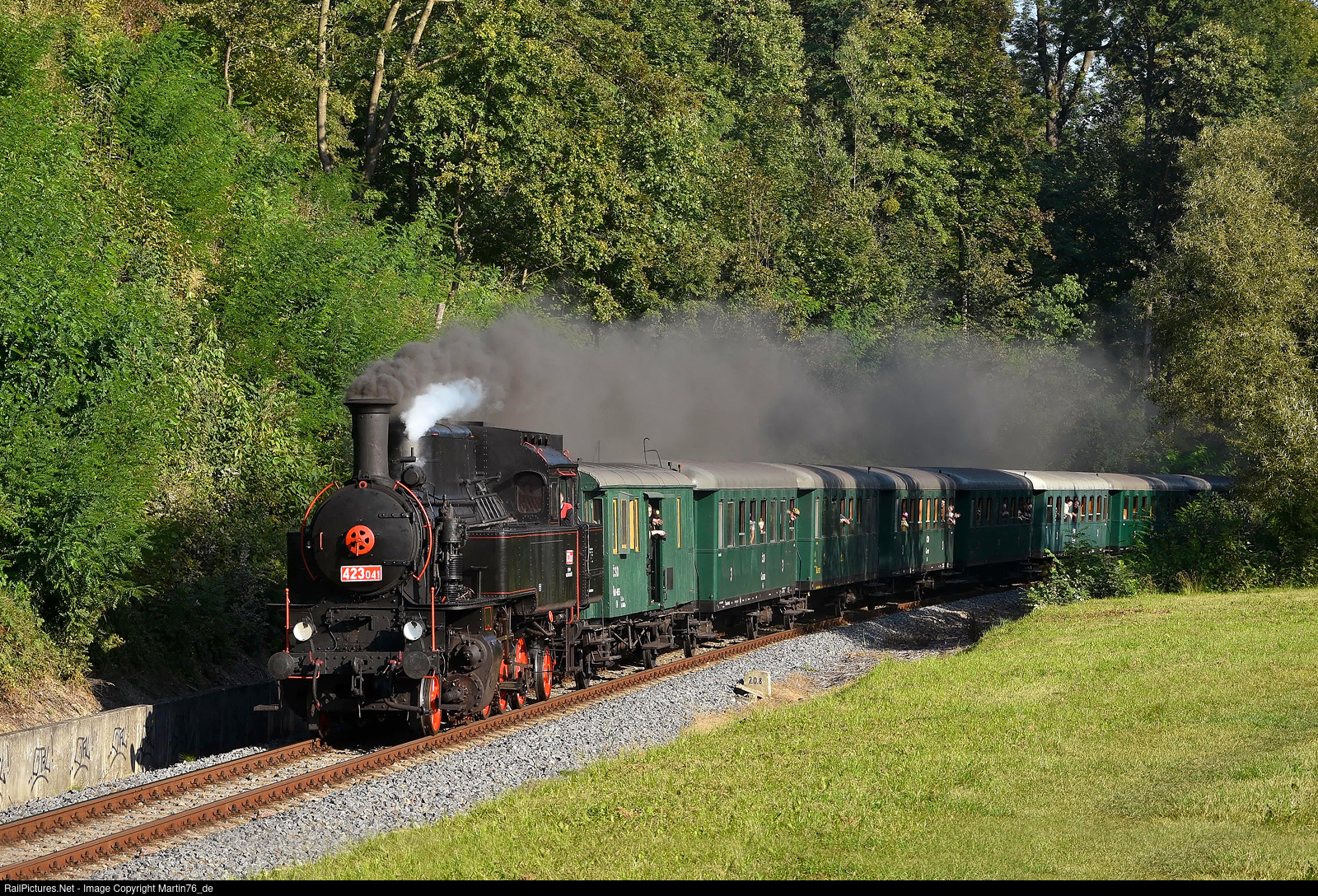 Frydek-Mistek. Steam tank locomotive 423.041 hauling a special passenger train from Frydland nad Ostravici to Ostrava hl. n.