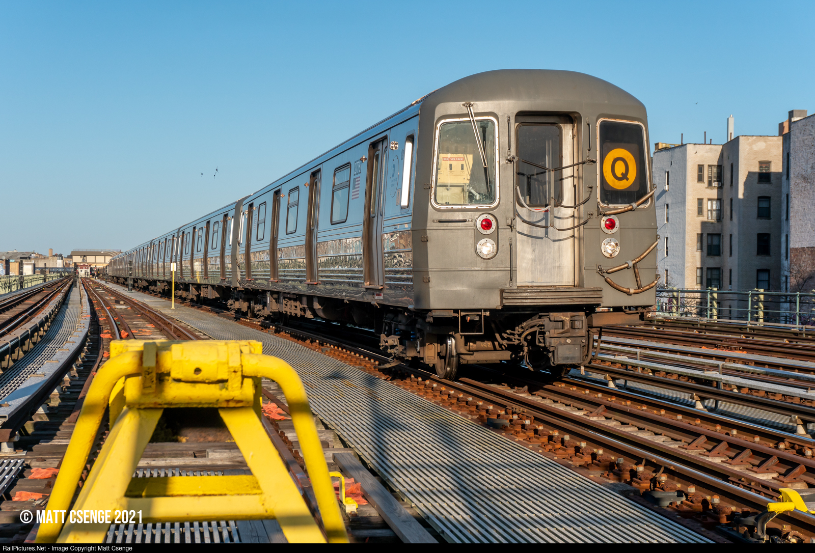 An out-of-service Q train sits just east of Ocean Pkwy Station awaiting a favorable signal to proceed into the station. Though there is no regular passenger service on the express tracks here, this is a common afternoon move for B trains returning to Coney Island Yard. The second half of this train was signed for the B, so I would assume in reality it was a B train, not a Q train.