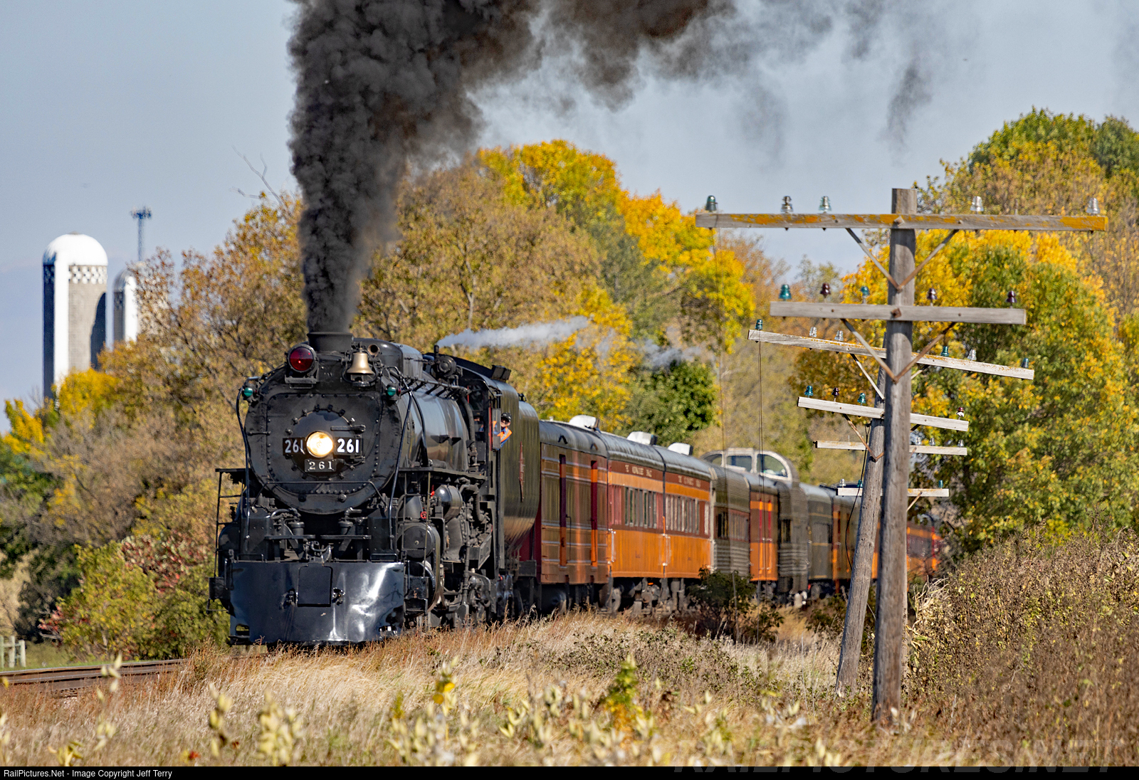 261 performs a photo runby for the passengers during the lunch break at Bongards, Minnesota. TC&W has not yet removed the old Milwaukee Road code line from this location.
