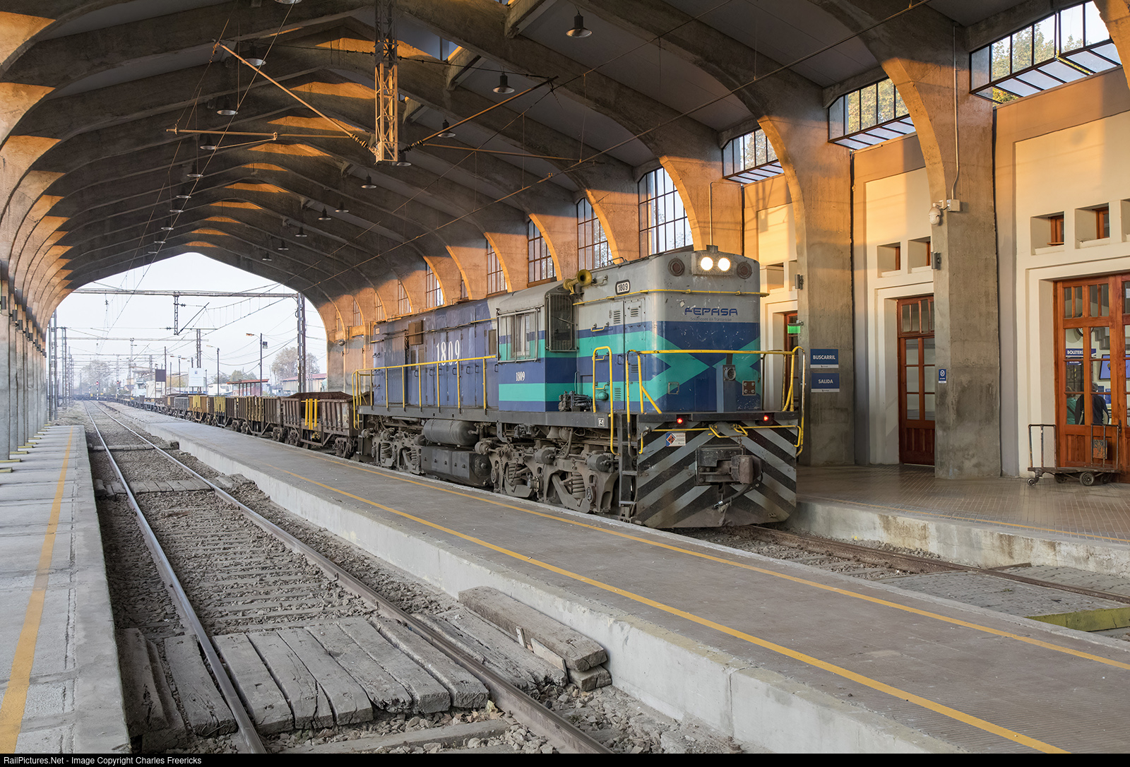 Arrived at first light at the station in Talca Chile to ride a passenger train and the first thing I see is an Alco sitting under the train shed. The guards weren't letting anyone one the platform yet, so I used my lack of Spanish to my advantage (you have to access the platform to get to the bathroom and I pointed that way). Of course, I was still on the wrong side of the light. When my friend crossed the tracks for the good light, I followed and got some decent shots. Of course he got away with it and I got told off, but I was told off in Spanish, so I really am not quite sure what was said. As it turned out this was the same unit I had shot in Santiago a few days earlier, but getting it under the train shed in Talca was a total coup!!!