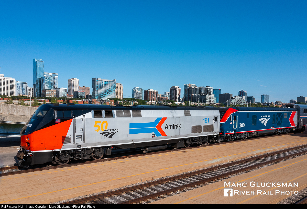 First And Last. On June 15, 2021, P42DC AMTK 161 (Phase I) and ALC42 AMTK 300 (Phase VI) sat in Chicago's Amtrak Yard after the Refreshed Superliner Interiors event. The AMTK 161 replaces the 40th Anniversary Phase I painted 156, which was damaged in an accident, while AMTK 300 is the first Phase VI and first ALC 42 engine in the fleet. AMTK 300, which had arrived on June 14, 2021 on Amtrak Train 6 (California Zephyr) recently returned to Chicago, IL for high speed testing.