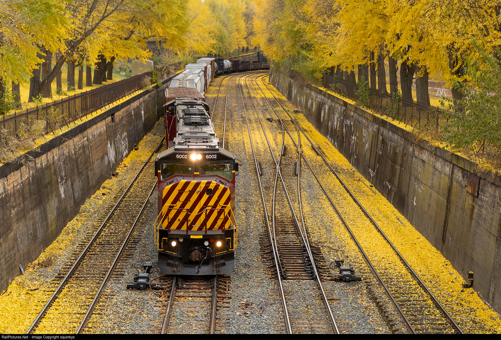 AVR SD60M 6002 slows as it approaches the NS Island Avenue Yard, rolling through "The Trench" in Pittsburgh, PA.