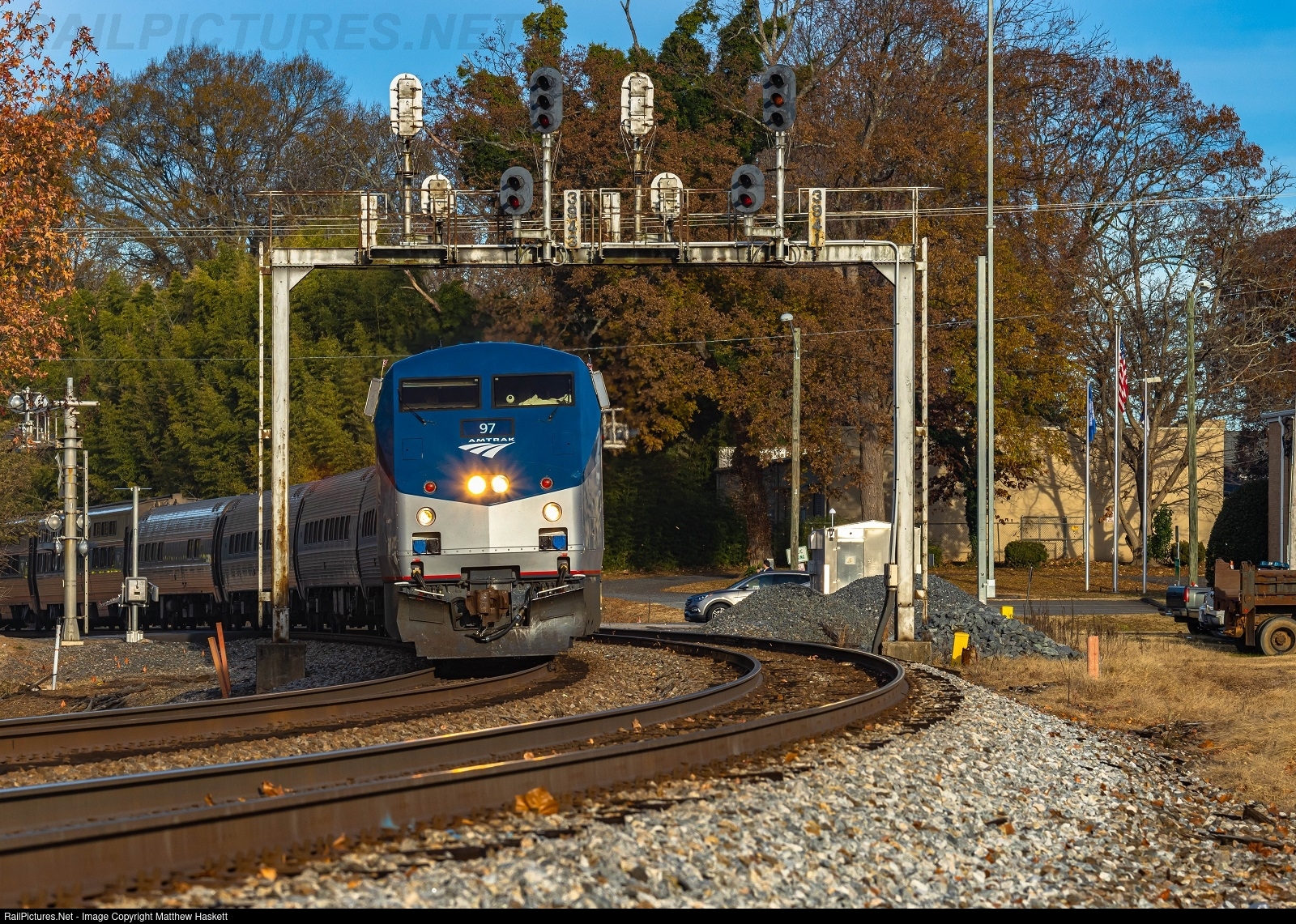 | A late daylight running Amtrak Crescent number 20 ducks under what is one of the last reaming Southern Railway intermediate bridges left on the Coastal Division. It's just made it's station stop at Gastonia before continuing its north bound run. |