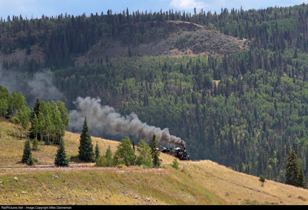 Rounding the bend Denver & Rio Grande T-12 4-6-0 No. 168 and D&RG C-18 Consolidation No. 425 power a vintage passenger train westbound toward Osier, Colorado, on August 27, 2021. This train operated as part of the “Victorian Iron Horse Roundup” event at the Cumbres & Toltec Scenic Railroad held in August 2021.