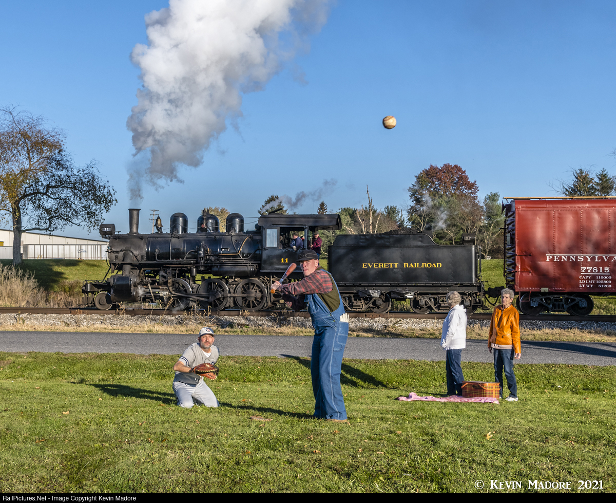 Steam scenes from Pennsylvania's Everett Railroad, featuring the former Bath & Hammondsport 2-6-0 #11, operating on photo charters and local Christmas Trains.