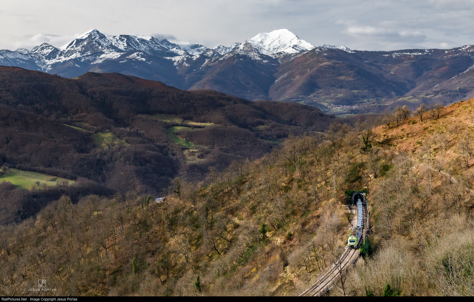 Captrain Bitrac locomotive climbs Pajares Pass third level with a southbound coils train.