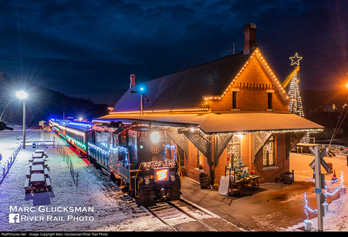 Eat, Drink and Be Merry! With just enough snow on the ground to set the mood for the season, Naugatuck Railroad 686 (née-NW 686, GP9, 3/1959) is getting ready to lead the final Railroad Museum of New England Litchfield Hills BBQ & Whiskey Train of the season on the night of Thursday, December 9, 2021. The former New Haven Railroad Line has seen a resurgence in recent years with heavily patronized tourist trains and local freight service. Seasonal events such as the BBQ & Whiskey, Chocolate Decadence, and Holiday Spirits Express are especially popular for their unique menus to accompany the journey.