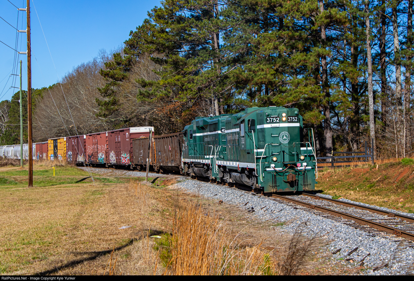 RailPictures.Net Photo: GRLW 3752 Greenville & Western EMD GP9 at Belton, South Carolina by Kyle Yunker