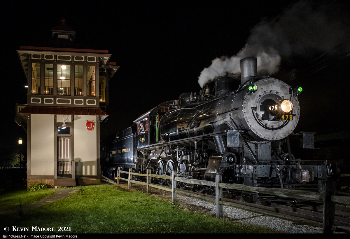 This little scene, however improbable, was staged During a November, 2021 Historic Transport Preservation (HTP) photo shoot at Pennsylvania's Strasburg Rail Road. It features the 475 as herself, with the old Pennsy J-Tower, which sits at the west end of the Strasburg Yard, as a backdrop. This interlocking tower, which was built in 1885 in Lemoyne, Pennsylvania, was retired in the early 1980s after nearly 100 years of service, and moved here as a museum piece.