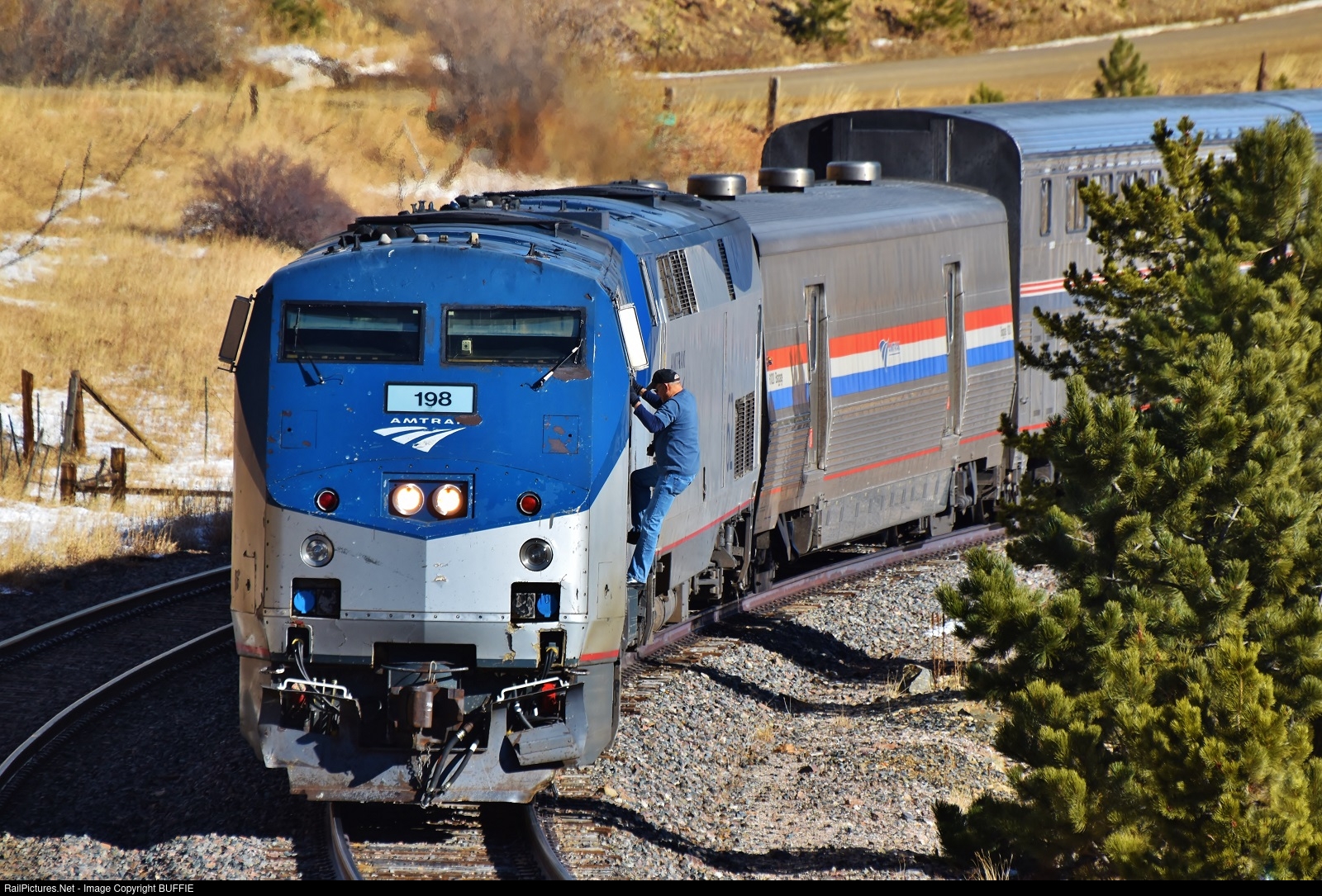 | Saddle UP! A crew member climbs back into the California Zephyr after having done a quick inspection on the motors.