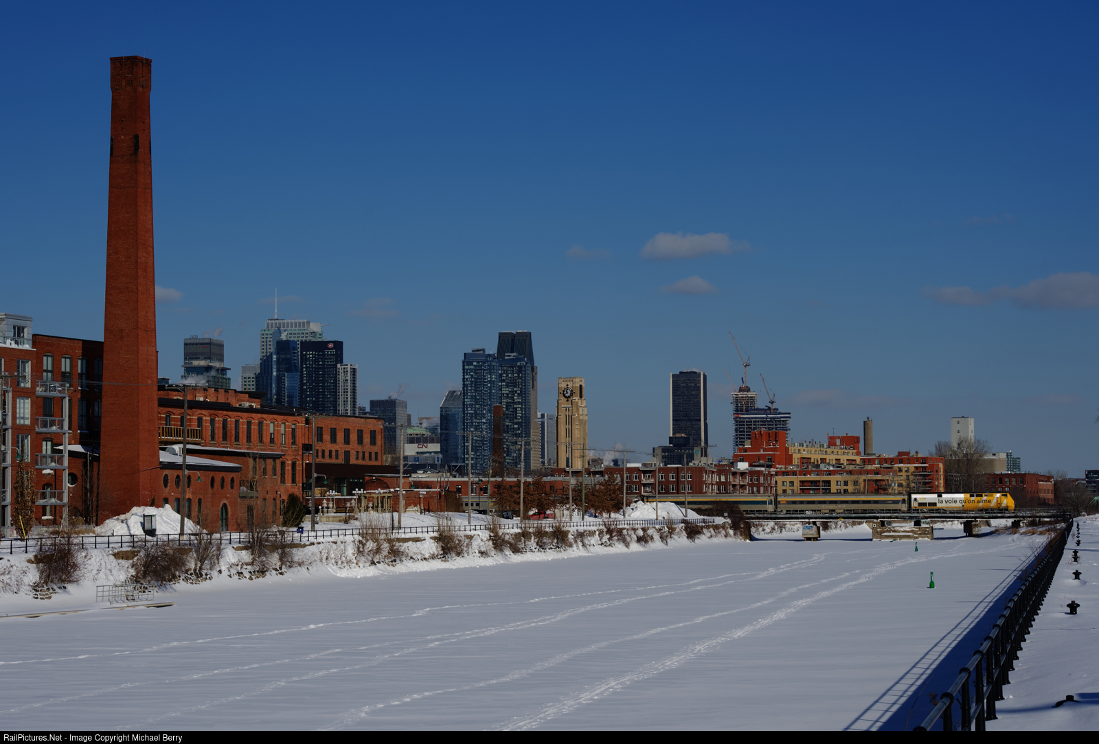 VIA 24 from Ottawa is crossing the Lachine Canal with VIA 903 and a HEP set.