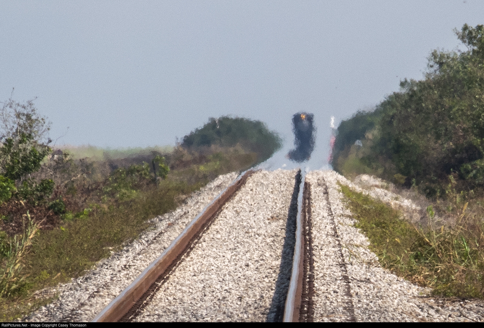 Captured by my son, Michael, is an interesting view of US Sugar's Pacific #148 reflecting itself into a "pool of water" along the "Okeelanta Strait". I thought it was a unique view of a mirage along the straight-away that leads to the Okeelanta sugar mill.