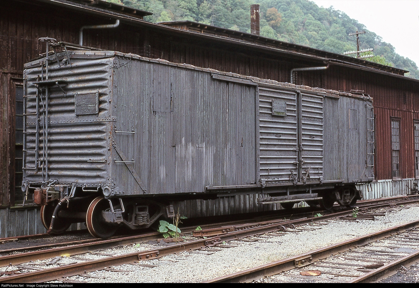 A Rare Find! While waiting in Thurmond for one of the 1987 New River Trains to pass through, I photographed this box car sitting beside the Engine Shed. It wasn't until recently that I came across this slide in my collection and became curious as to the car's history. With the help of the C&O Historical Society, the information was found. The car is a 40 Ton Auto Box of Pere Marquette lineage. It was 44 ft - 7-1/2" coupler to coupler. Wood sheath with steel ends. The drawing from the C&O Archives was dated December 10th 1930 with a Build Date of 1913. The actual build date of this car is unknown due to lack of any markings. If anyone has any additional information on this car please contact me. I would really like to know what happened to it after 1987.