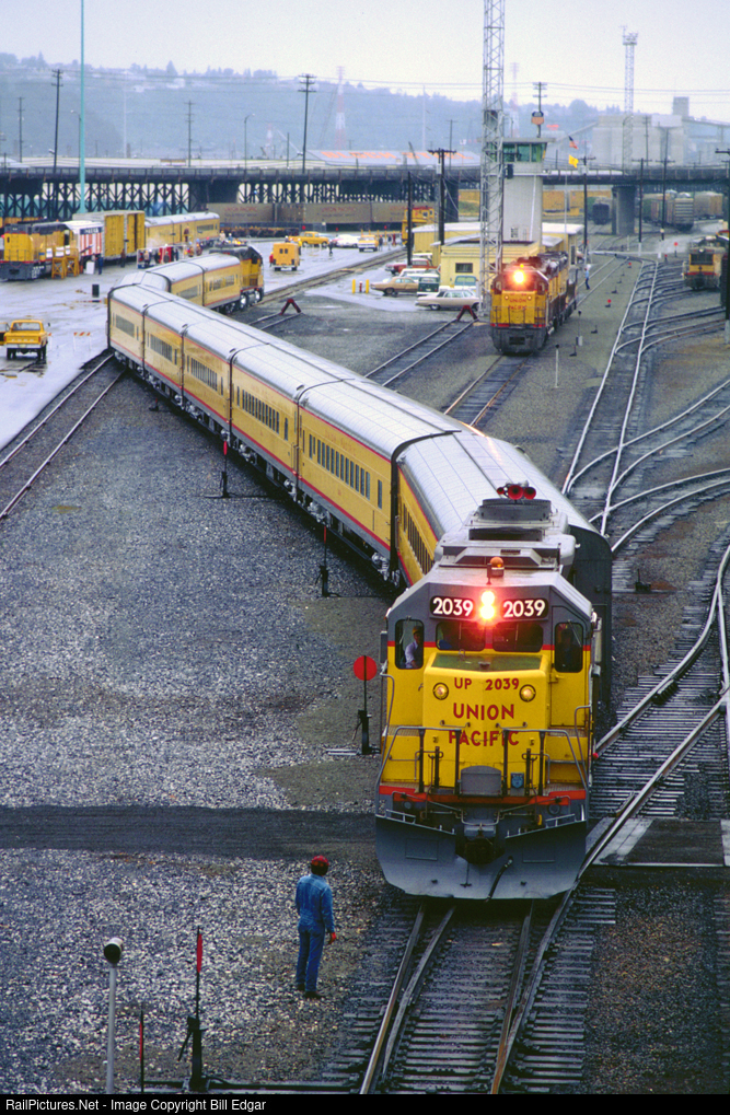 See beautiful diesel locomotives in UP's traditional armour yellow livery and special commemorative paint schemes pulling long trains of yellows cars reminiscent of the days when UP domeliners seemed to go Everywhere West.