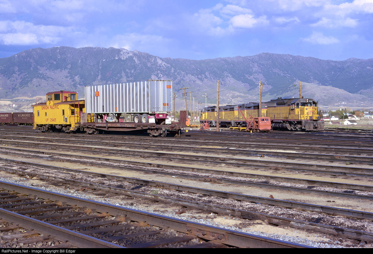 A quartet of UP power led by SD40 UP3032 followed by two GP30Bs and a GP30 await their call to duty at Butte, MT. The caboose and piggyback car will no doubt be on the train which will pick up cars possibly at Rocker as well as Silver Bow before heading south to Pocatello, ID.