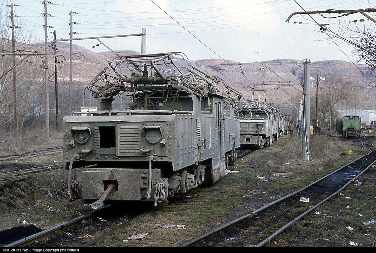 A line up of the narrow gauge electric locos at Komanos mine in 1996.