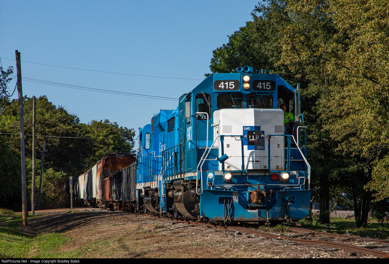 A Rock Island Rail Freight Train is seen here heading south through Sumner, MS., on their way south to Swan Lake to interchange with Canadian National. GMTX GP15-1 #415 has since been repainted into the Rock Island Rail paint scheme and renumbered to #1106, it has also been moved to Gulfport, MS., where it works along the former Gulf & Ship Island, now owned by Rock Island Rail.