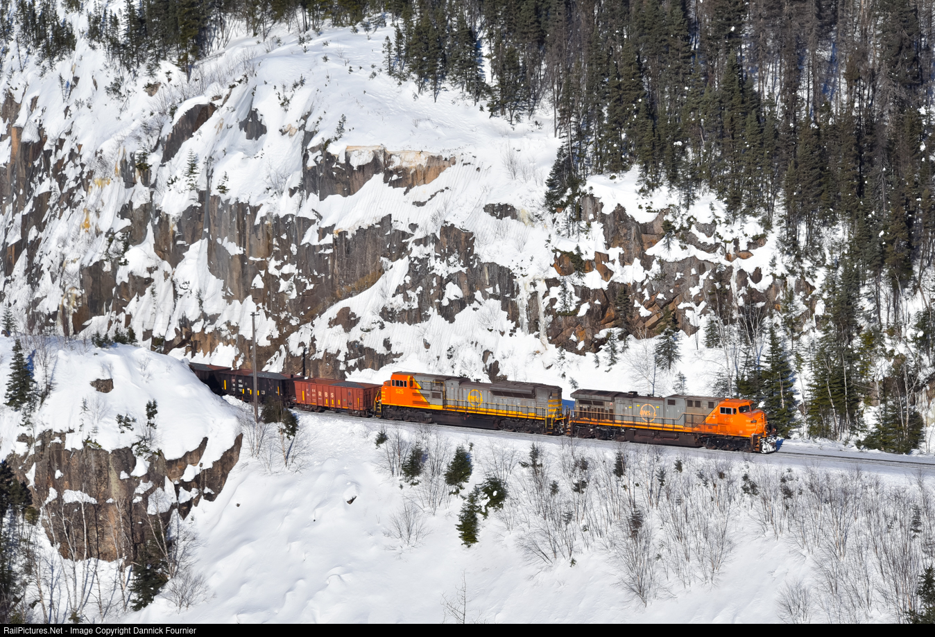 QNS&L 426 southbound with a loaded iron ore train
