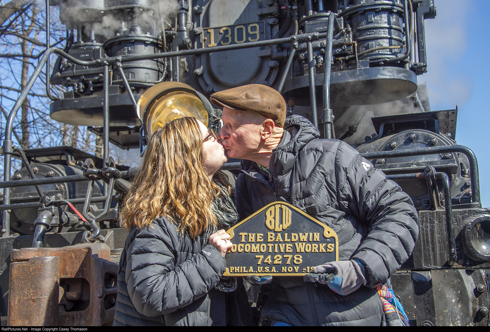 Jim and Cate Wrinn share a special moment while celebrating the success of the Trains Magazine photo charter of Western Maryland 1309 at the end of February, 2022.