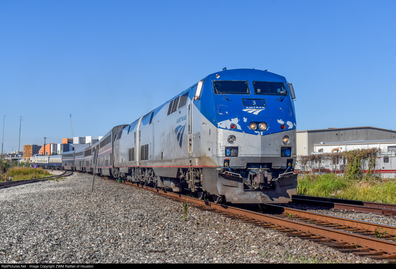 RailPictures.Net Photo: AMTK 3 Amtrak GE P42DC at Houston, Texas by ZWM Railfan of Houston