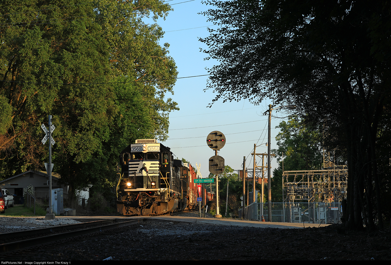 | Minutes before the shadows take over, NS L44 is seen beginning its short trip up the Marion Branch as it passes the PRR position lights at CP 78. There are four sets of PLs in Marion which are the last standing on the branch. |