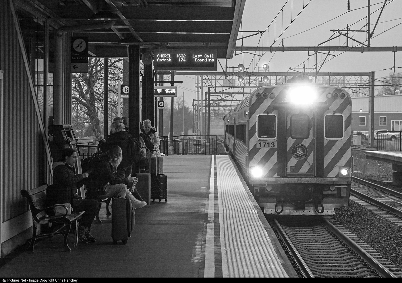 | Light fades fast during the winter in New England. It's about 4 PM and it's nearly dark as this Shore Line East train to New London rolls into Old Saybrook. It's a fairly mild but raw day on the Connecticut coast and it has created a moody scene at the station, as 2021 closes out its final day in December. |