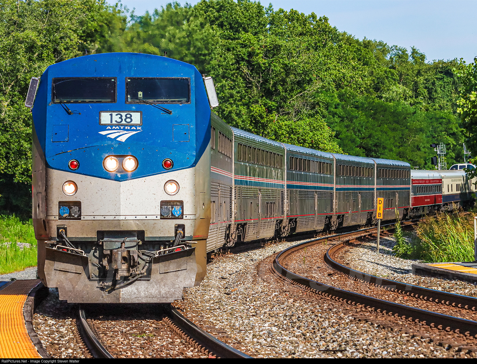| Westbound Capitol Limited train number 29, rounds the corner about to knock down a Medium Clear signal at Point of Rocks. Amtrak P42DC 138 does the honors of pulling the Capitol Limited which had three private cars rear. The three private cars were "Northern Dreams," "Evelyn A. Henry," and "Warren R. Henry." |