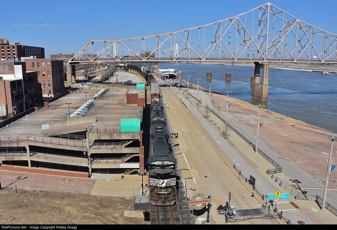 NS 1142 leads a manifest South past LaCledes Landing in St. Louis.