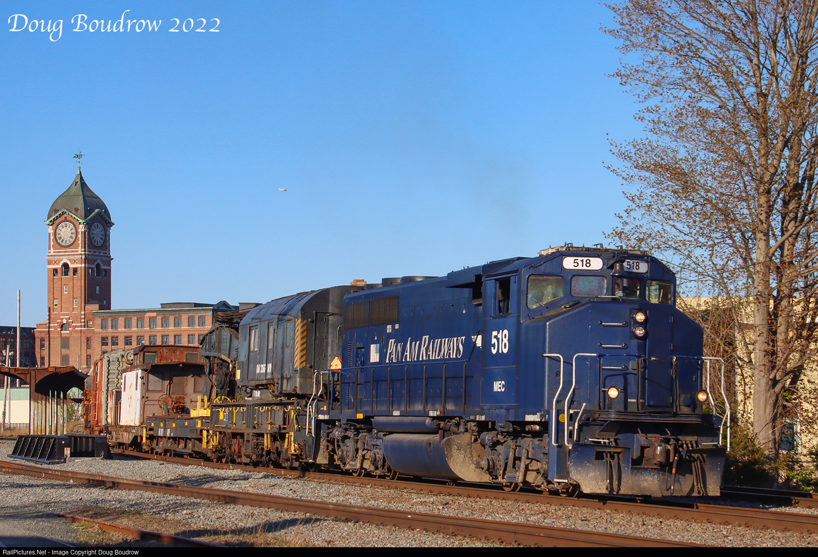 | The Pan Am Railways East Deerfield Wreck Train is seen being brought back to East Deerfield and is approaching CPF-AS in Lawrence. The train is using the symbol PO-3 for this part of the run based on the crew assigned. The American Brownhoist crane is of Boston & Maine lineage and will hopefully be preserved somewhere after the CSX takeover. |