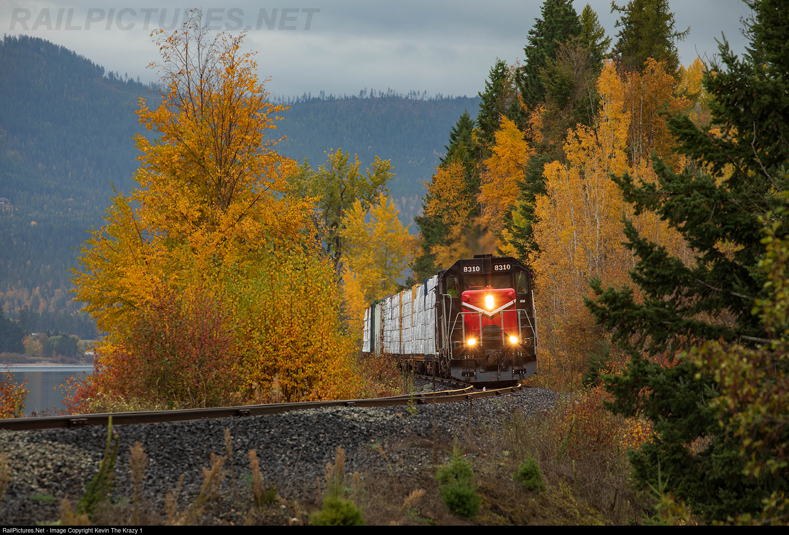 The Pend Oreille River Railroad is seen making its tri-weekly run on this Friday full of foliage to the BNSF interchange at Sandpoint.