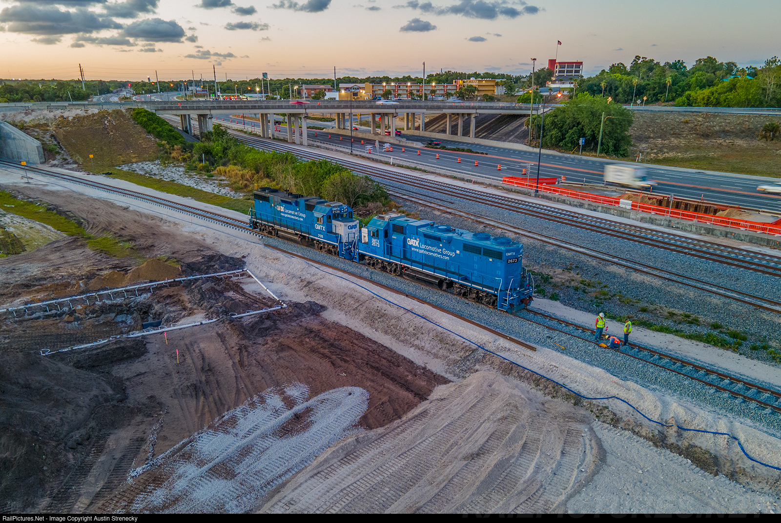 GMTX 2126 and GMTX 2673 were delivered on May 11, 2022 to Brightline's new mainline in Cocoa, FL. Parked next to the Cocoa Tunnel, these locomotives will power the work trains that will help build the line west to Orlando.