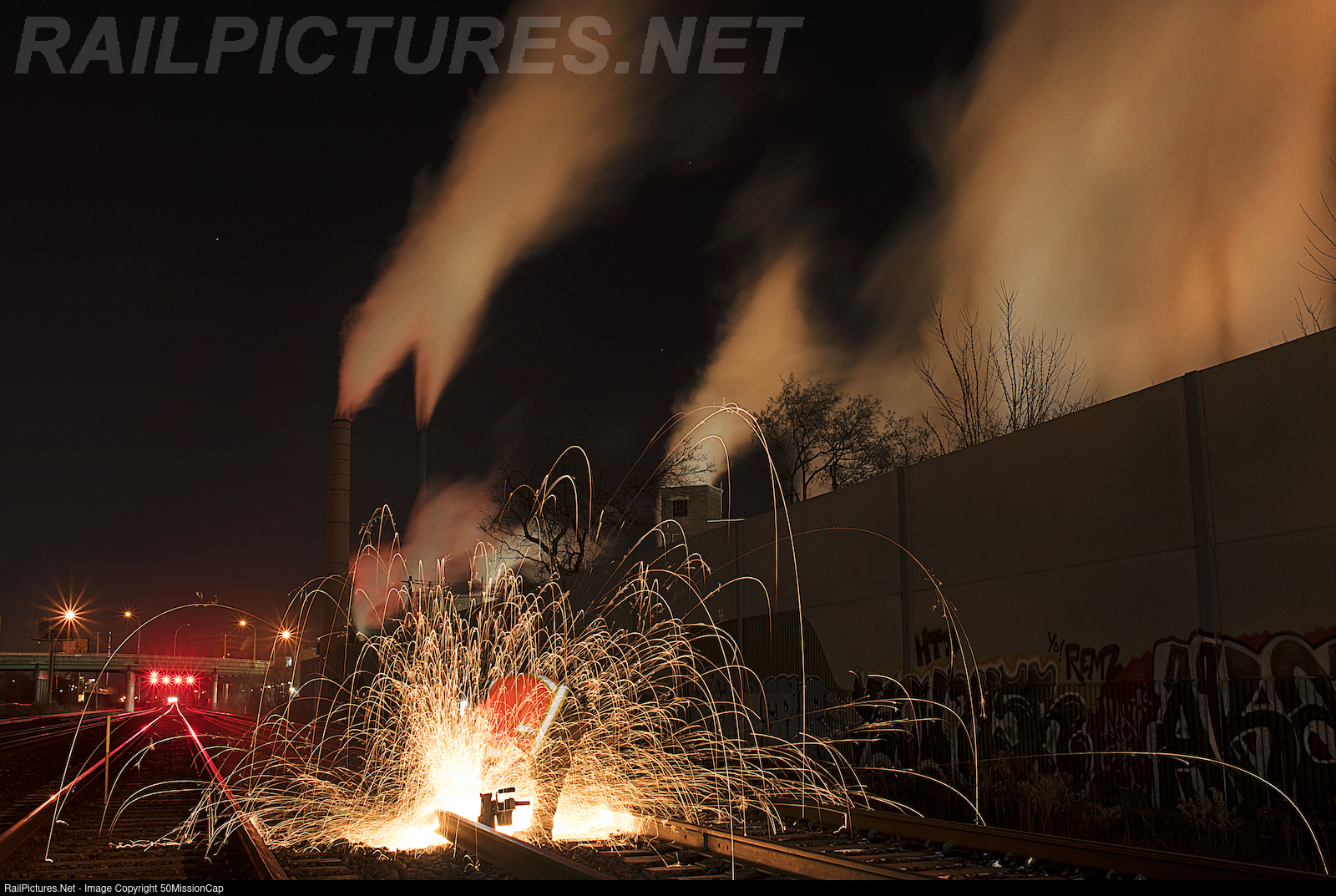 Working on the section certainly can be rewarding at times, it's a unique job that allows for some neat behind the scene imagery. On this particular night the temperatures were well below freezing as the Irving tissue plant steams away in the background as become engulfed with flying sparks as I cut some old 115lb rail so it can be taken off site and used somewhere else, just your typical night!
