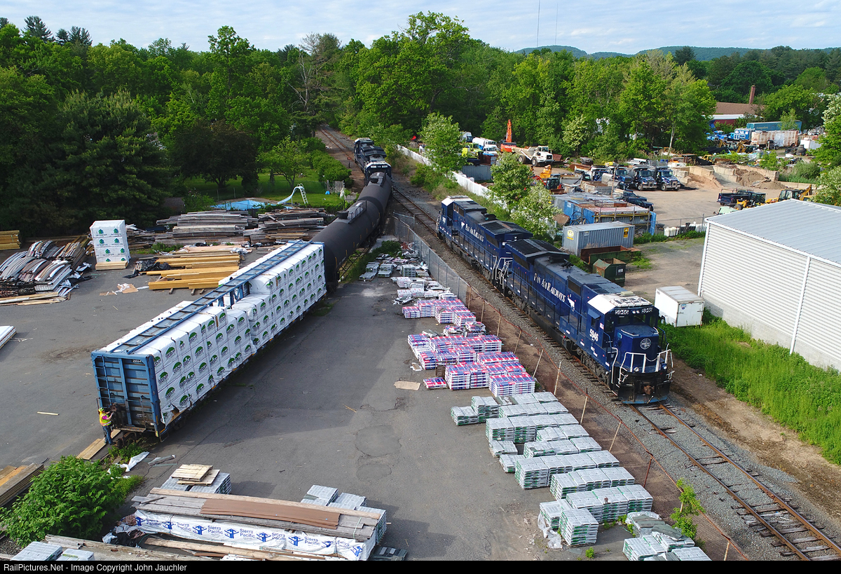 PL-1 delivers a load of Oregon lumber on the old New Haven Canal Line. Just a few miles of this route remain with track in Connecticut; the rest has been transformed into a nicely-done bike trail.