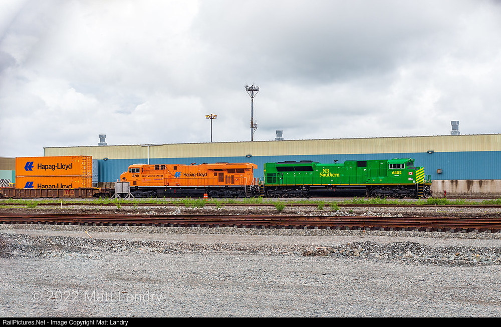 CP 8781, the Hapag Lloyd painted pony, sits paired with New Brunswick Southern Railway 6402 at the port of Saint John, for "Port Days" which is happening today. This is the first CP engine to make it into New Brunswick in quite some time. Of course, with CP's desire to get back to the port of Saint John, it made sense to have this engine eventually make it to Saint John, for reasons like this. Whether or not this engine, along with many more CP ponies make it all the way to Saint John remains to be seen, but I'll say the orange and green kinda look nice together.
