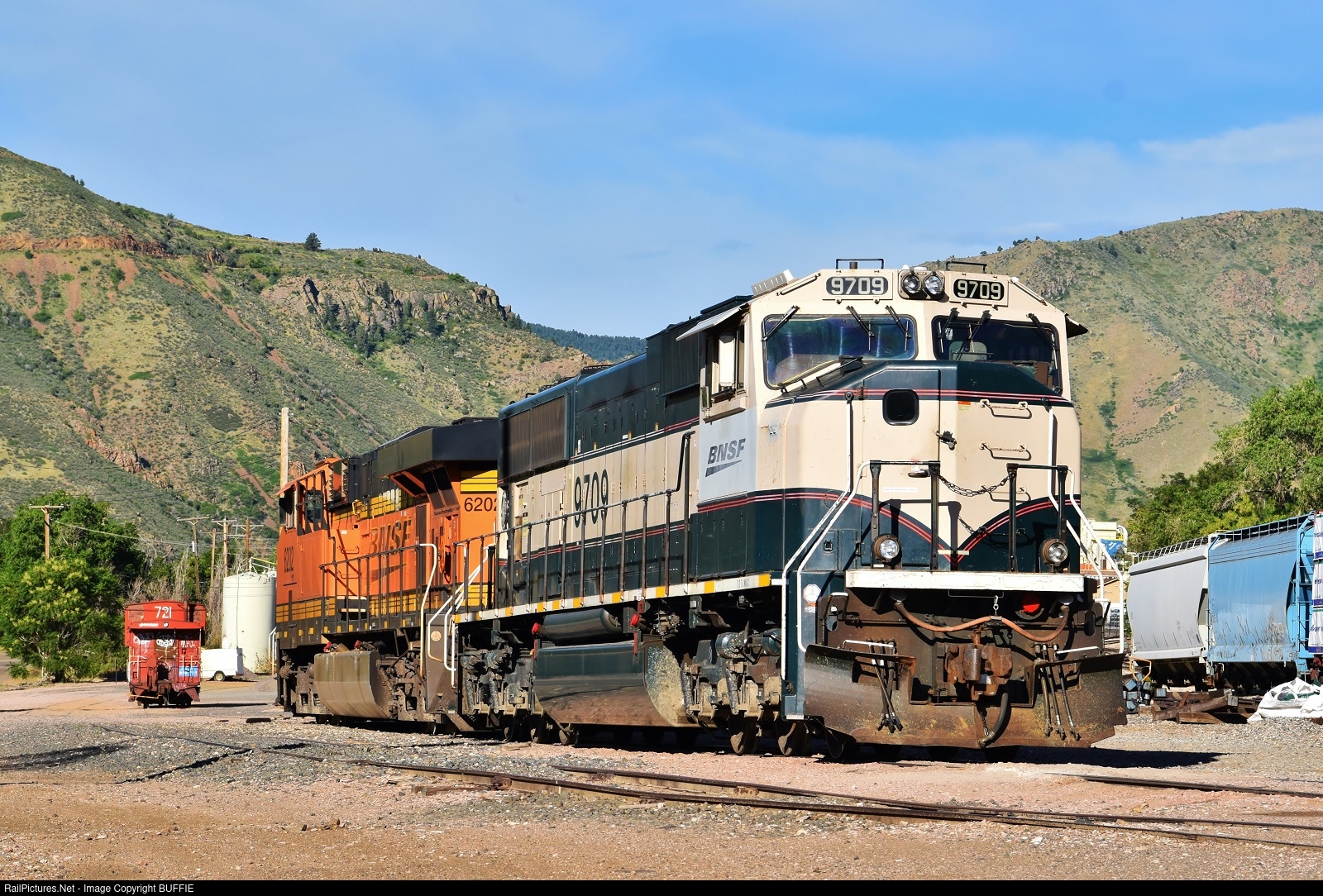 BNSF 9709 waits for a train to be assembled in a yard in Golden, Colorado 1600