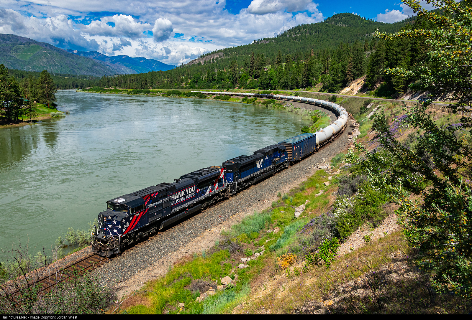 With night gas getting in later than usual, day gas used some power sitting in Missoula, one of the units happened to be the 4404, the Essential Workers wrapped unit. Here the train is heading back east after unloading in Thompson Falls. No complaining from me here!