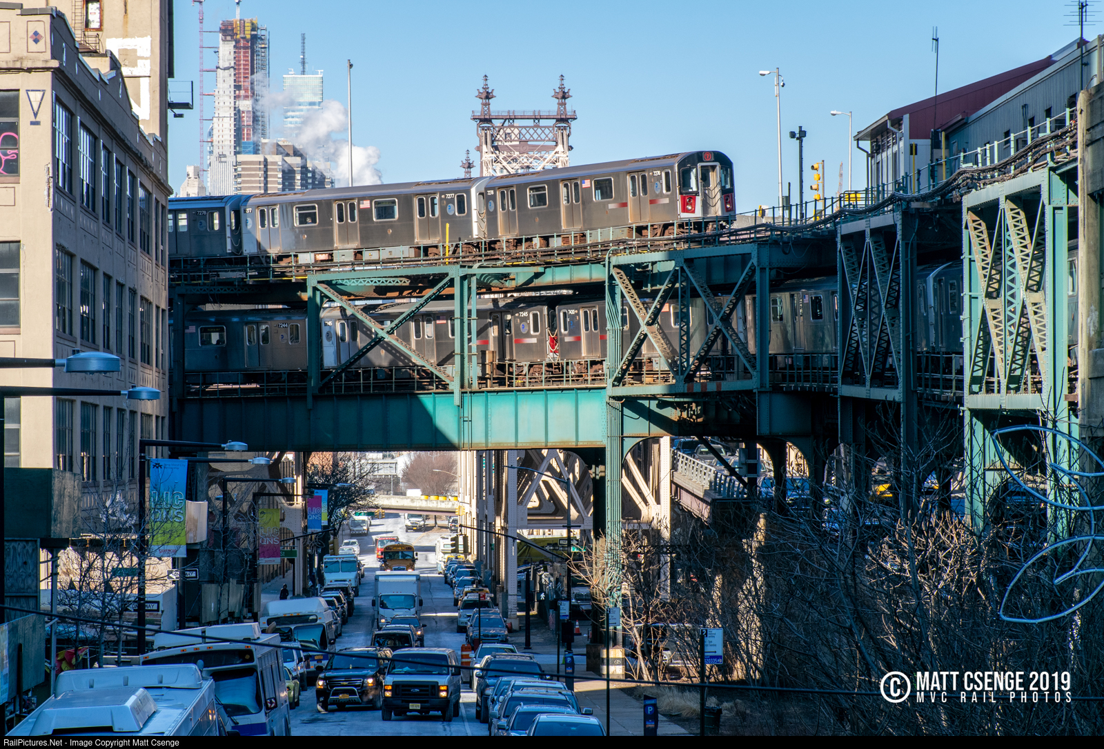 Two R188 trains (Kawasaki, 2010-2016) crawl into and out of Queensboro Plaza station on the double-deck curve. I was paying so much attention to the incoming train while taking the shot that I hadn't even realized there was one on the lower level!