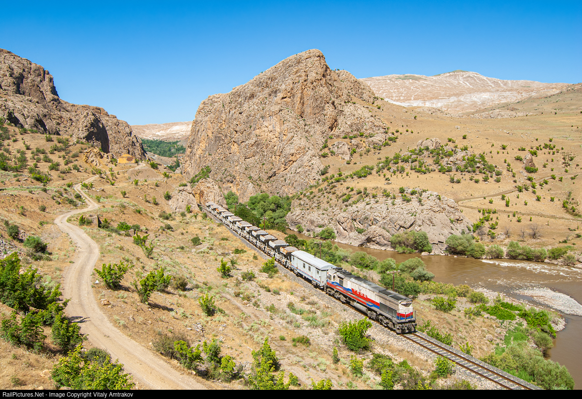 | The diesel locomotive DE33-012 is hauling a freight train between Gullubag and Atma. |