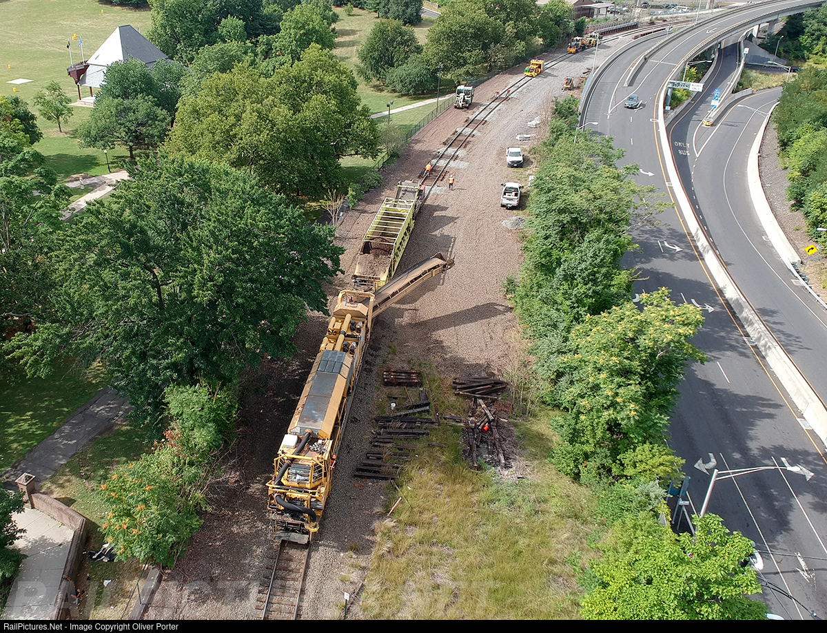 Major renovations and track work around Union Station have shut the CTRail/Amtrak Hartford Line (New Haven - Springfield Corridor) to passenger traffic this summer, from July 18 - September 9. As part of the work, a LORAM unit approaches the Asylum Bridge just south of the station on a hot morning.