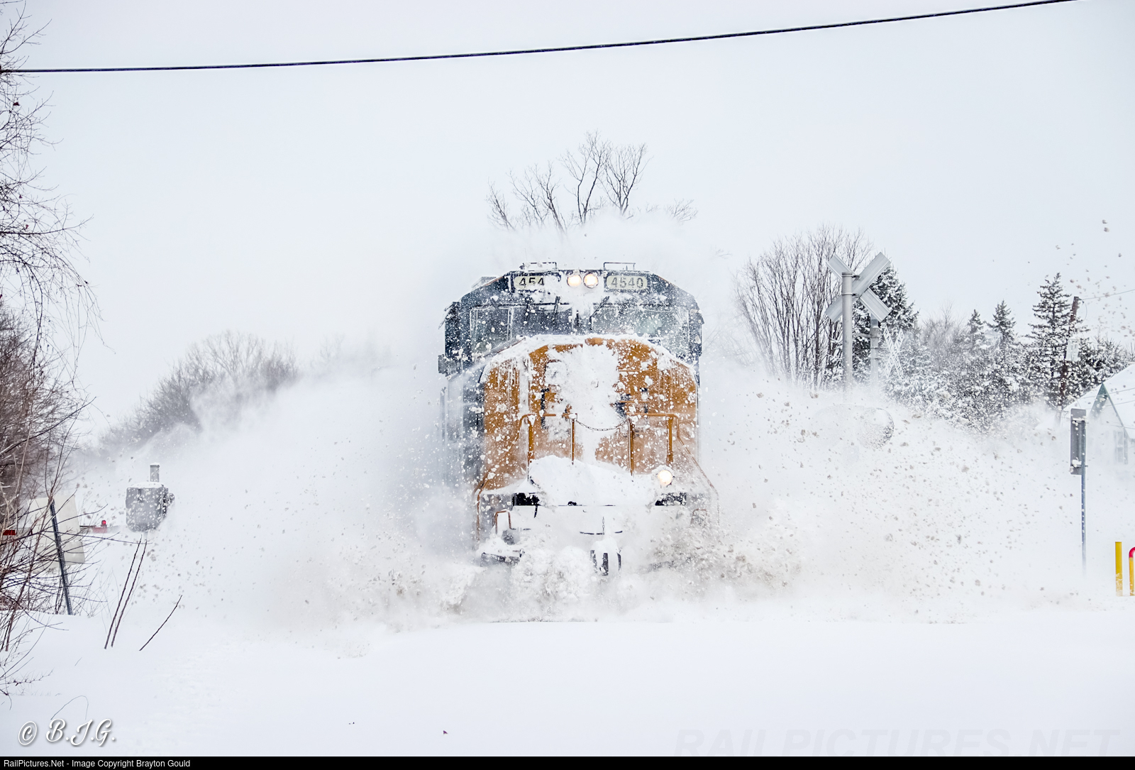After a heavy lake effect storm dropped several feet of snow the previous night, Q62102 rockets through town carving a path for future rail traffic