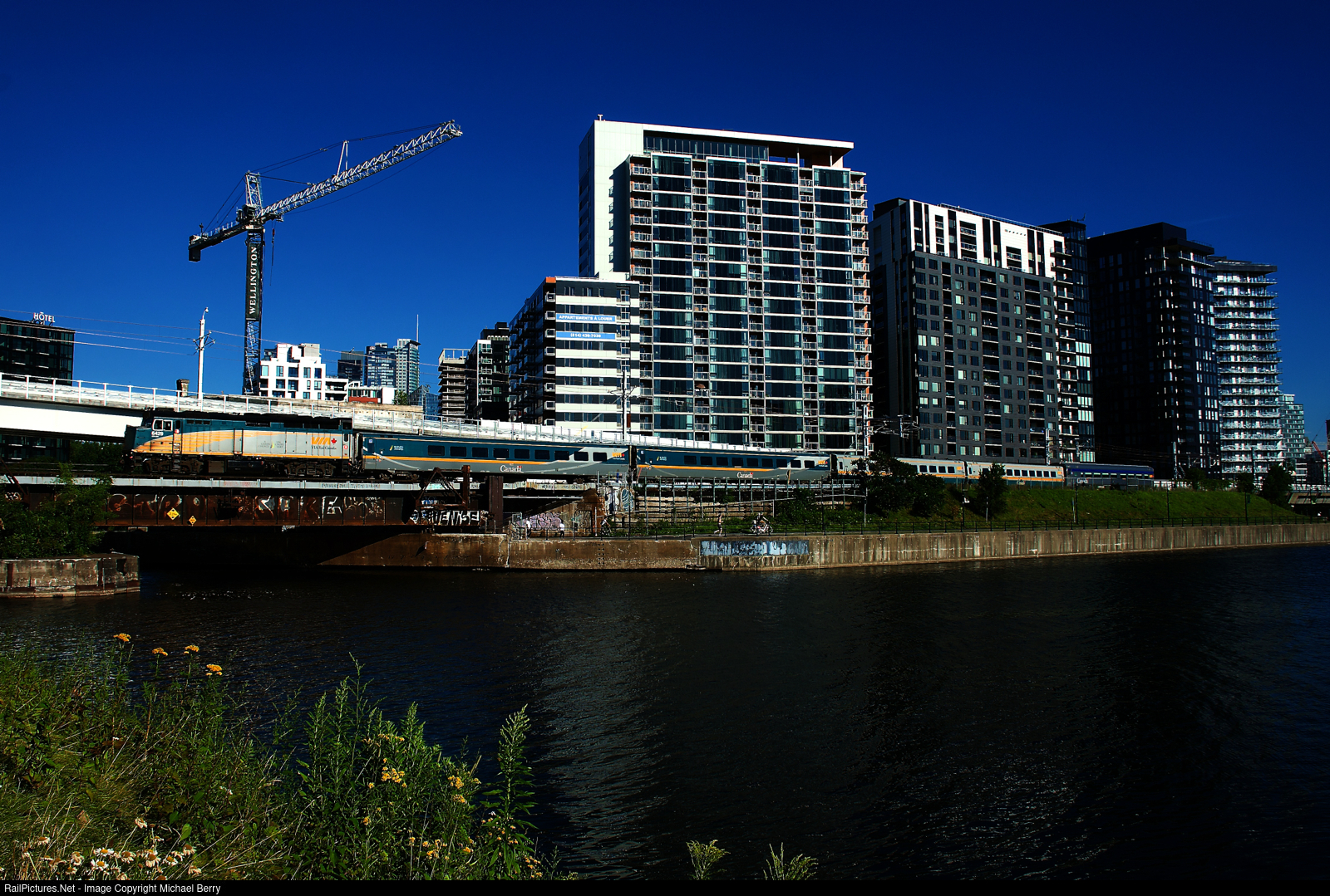 A single HEP car on the tail end looks a bit out of place as VIA 63 deadheads towards Central Station.