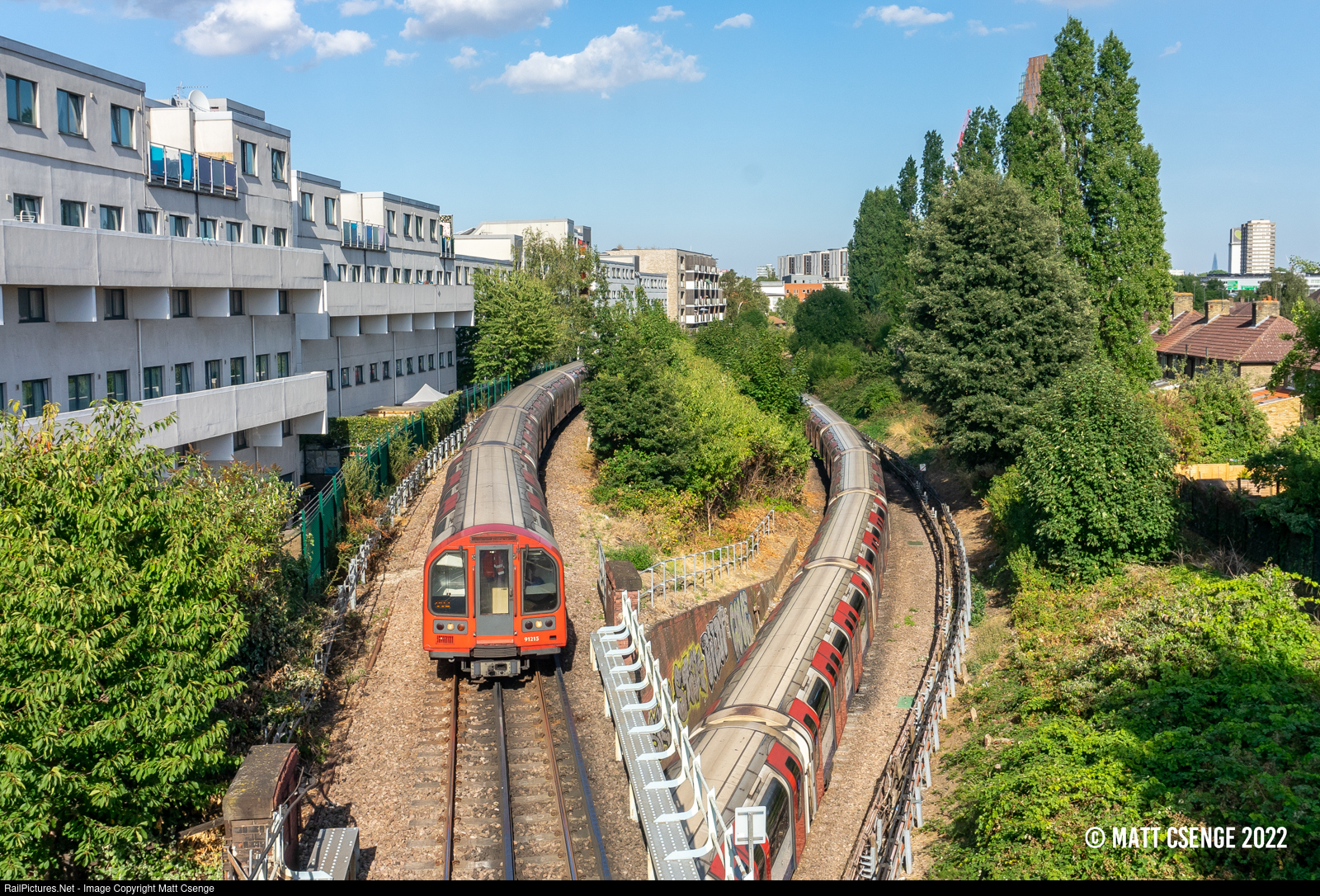 Two Central Line 1992 Stock trains (BREL/ABB, 1991-1994) are seen crossing between White City and East Acton stations. Due to how the line was constructed at Shepherd's Bush, trains run right-handed at White City station and this crossing switches them back to the correct left-hand side. I waited here probably a good 45 minutes shooting every train that came by in the hopes that there would be another coming the other direction, and right as I was about to give up I got lucky with this shot! |