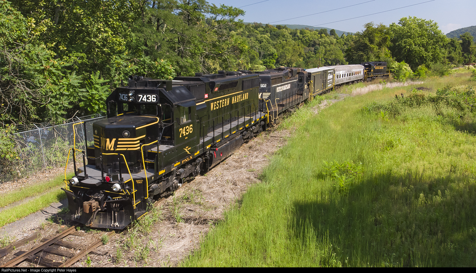 Western Maryland Scenic has become at least a temporary home for two WM veterans, rebuilt SD35 7436 and SD40 7471. I was hoping one of them would be assisting 1309 on my trip, but alas, it was their Polar Express-painted F40. Nonetheless, a quick drone flight and I at least had an image of these classic diesels, plus a GP30 now used for parts.