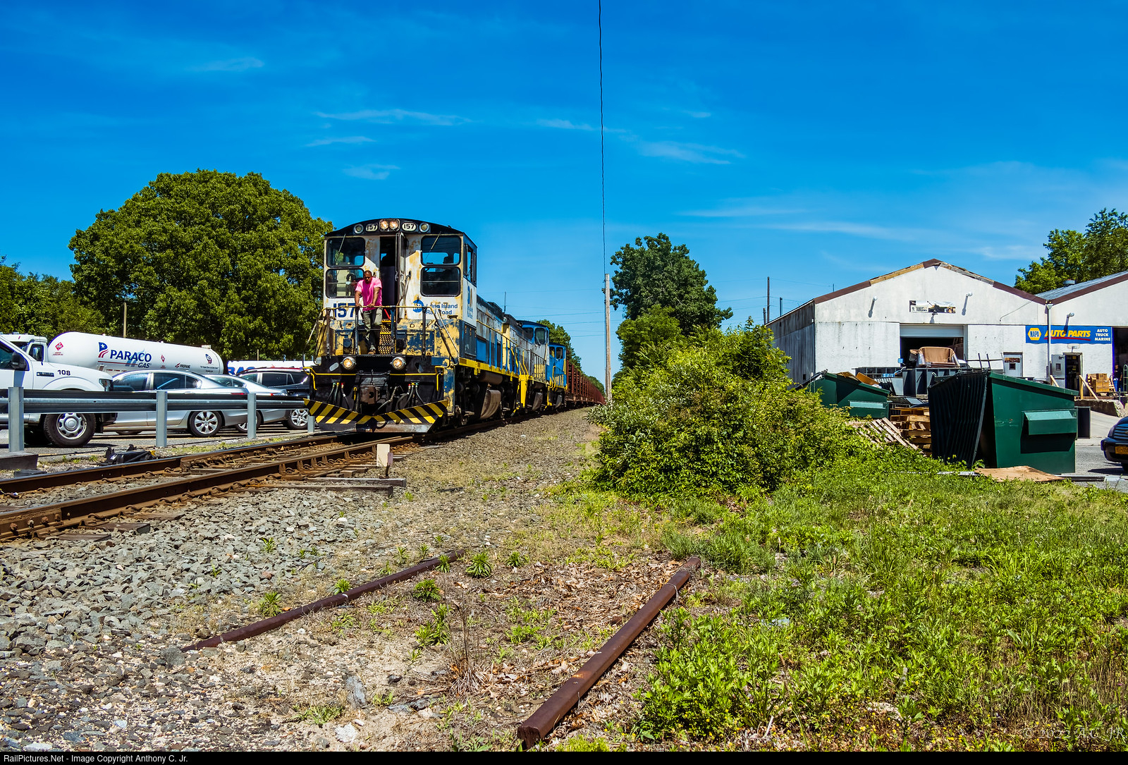 | With a friendly conductor at the front covering for the upcoming crossing, Long Island's CWR train moves at a snail's pace past the Paraco Gas switch which is served by NYA frequently. For this program, they will be dropping rail between LD BLS and AH BLS, with the full scope of the project being all the way to Ronkonkoma for upcoming plans to increase rail load and signalize/rule 261 out to LD. |
