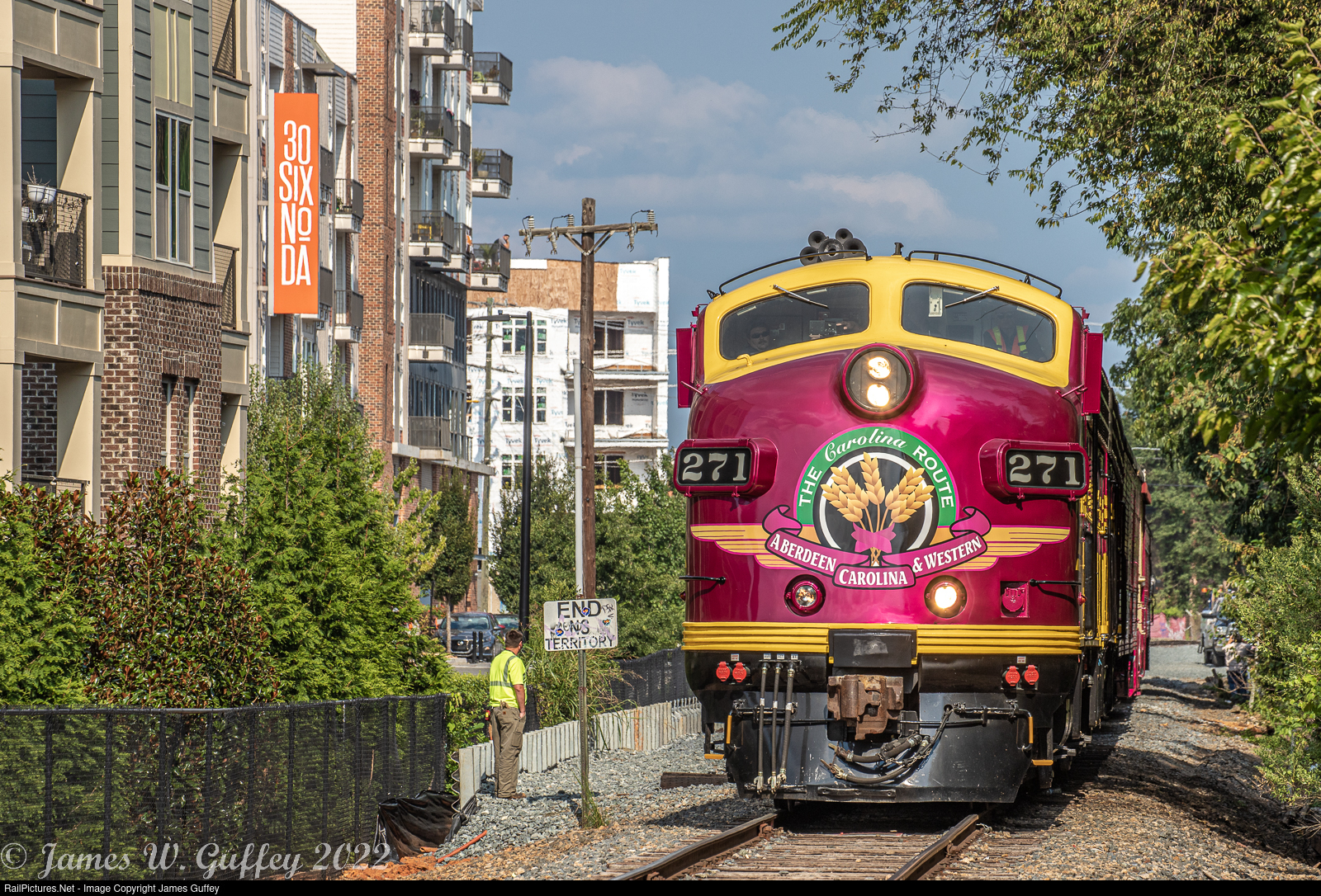Aberdeen, Carolina, and Western shoves into the siding in the trendy NoDa (North Davidson Street) area of Charlotte, on the outskirts of their connection with NS at the Charlotte yard.