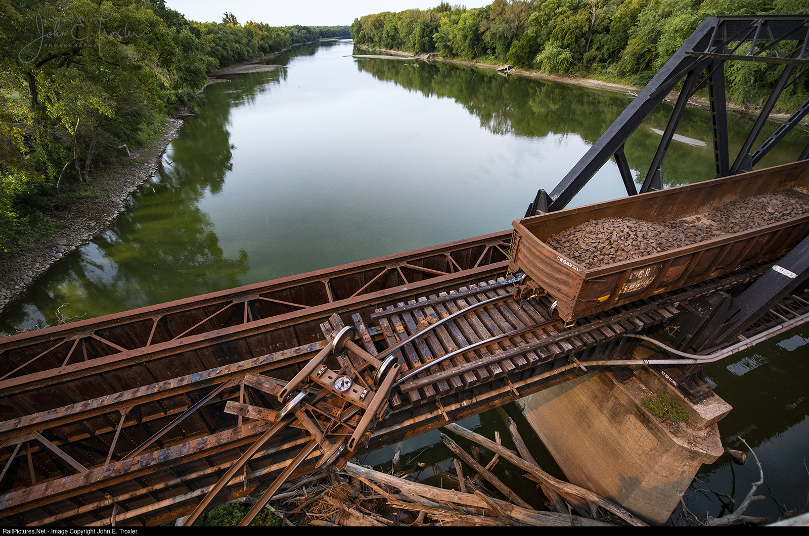 | Norfolk Southern had a little derailment of 2 gondolas loaded with pig iron. An NS local was pushing up the lead to the KBSR to clear Lafayette Junction when the derailment occurred, dumping two gondolas over the side and onto the river bank. The location is the NS - KBSR interchange on the former NYC/NKP bridge crossing the Wabash River. |