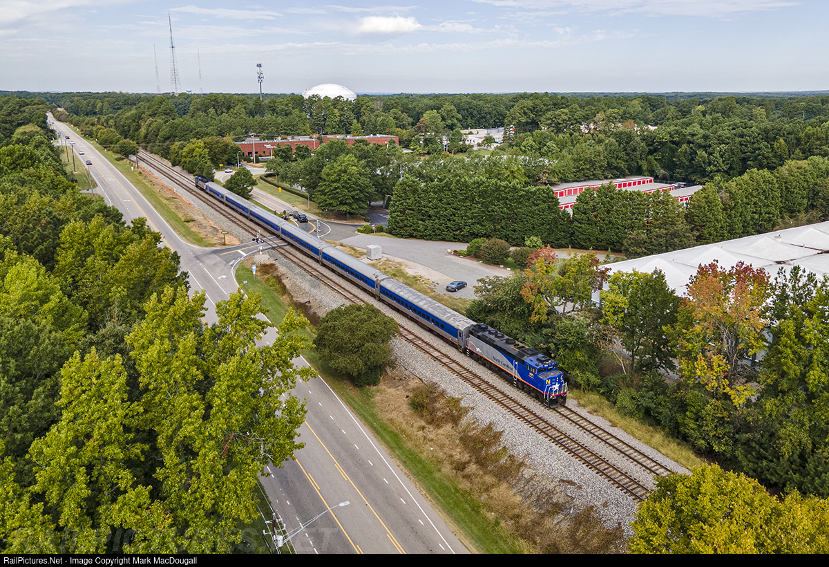 NCDOT's F59PH "Town of Cary" 1871 enters its namesake on the rear of a longer than typical Amtrak 75 bound for Charlotte.