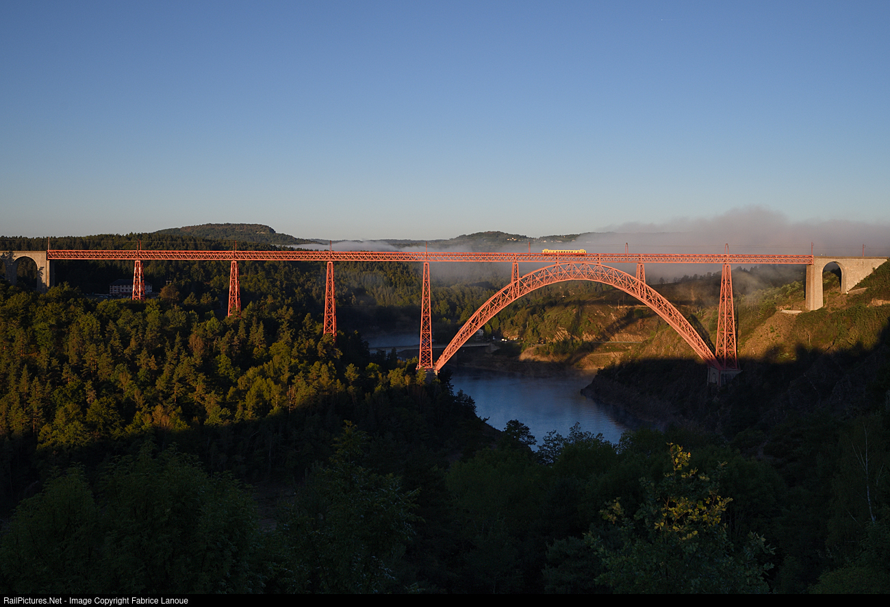 X 2403 crossing Garabit viaduct a one the giant of the Massif Central on the Causses railway line