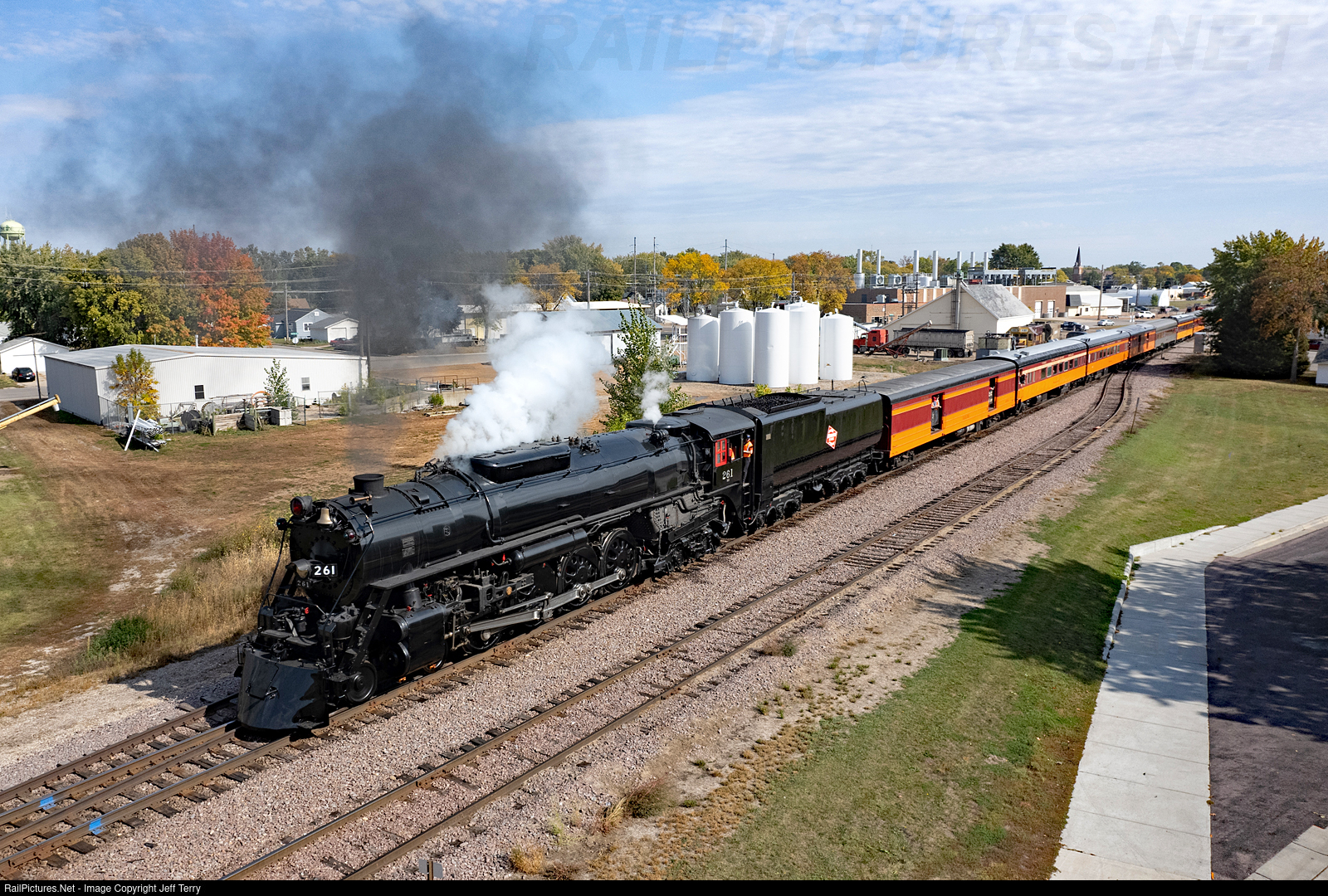 | On the Milwaukee Road Westbound CMStP&P 261 steams west out of Glencoe, Minnesota, with the Gourmet Express. This was once the Milwaukee Road's main line to the Pacific and hosted trains like the Olympian Hiawatha. |