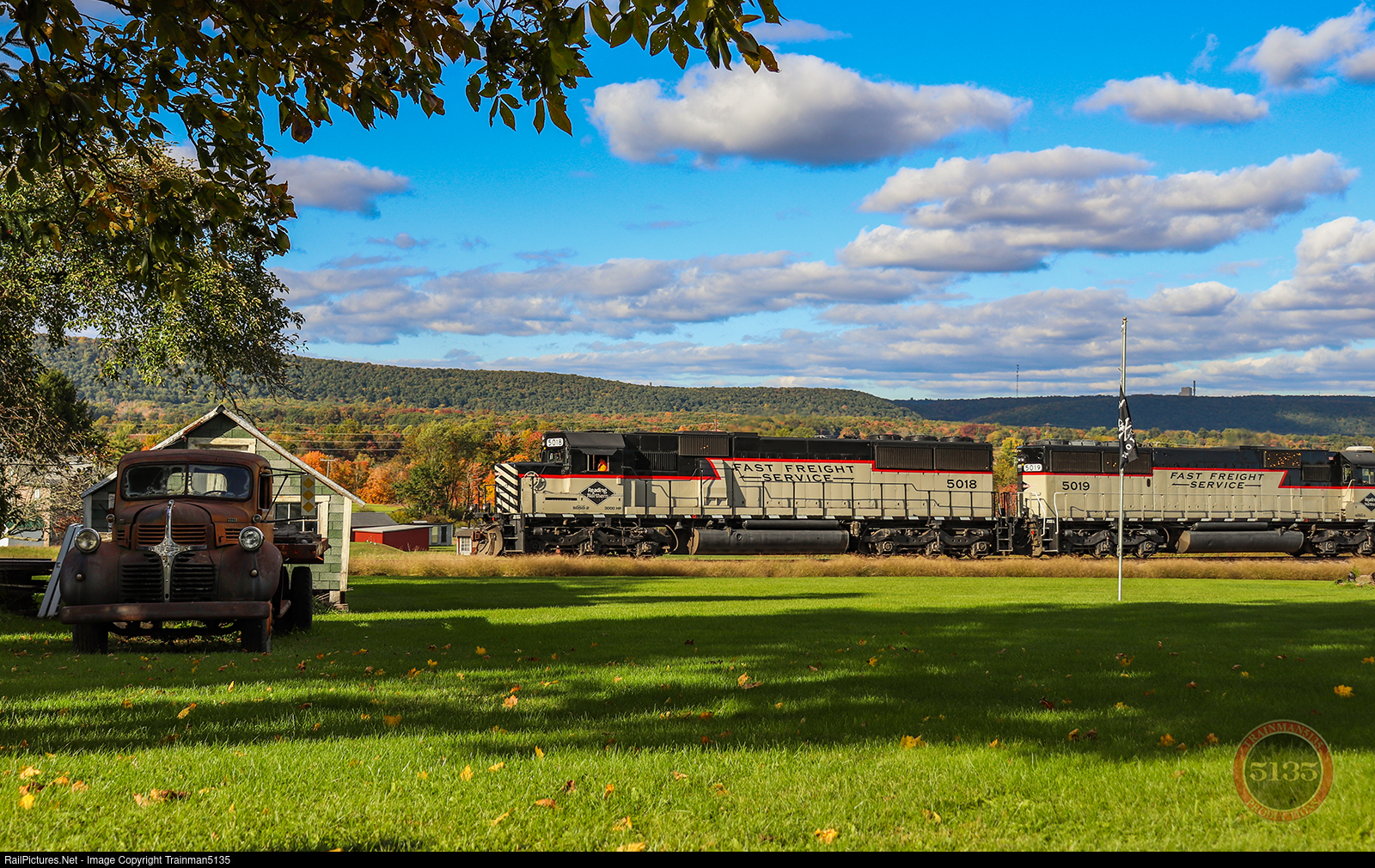 It's pretty much a right of passage at this point to take a photo of a Reading and Northern train next to the old pickup truck in Hometown, PA. Here's this year's rendition with the SD50's.